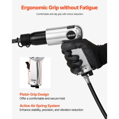 Lätt att använda: Denna pneumatiska hammare är designad med en responsiv avtryckare och startfunktion med en knapptryckning, vilket gör den enkel att använda utan att behöva byta avtryckare. Och den ergonomiska pistolgreppsdesignen garanterar ett bekvämt, halkfritt, säkert och trötthetsfritt grepp.