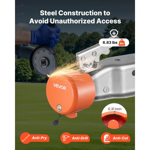 Robust stöldskyddsdesign: Tillverkat av slitstarkt kolstål väger detta släpvagnslås 2,9 kg med en 0,7 cm tjock vägg, vilket gör det motståndskraftigt mot kofot, borrar och verktyg. Det är byggt för att hålla din släpvagn säker och minimera risken för stöld.