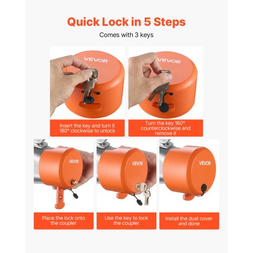 Snabb och enkel låsning: Låsningen tar mindre än 30 sekunder! Lås bara upp, placera på kopplingen och säkra. Enhandsinstallation och en invändig vadderad kudde säkerställer en tät och stabil passform. Levereras med 4 nycklar för din bekvämlighet.