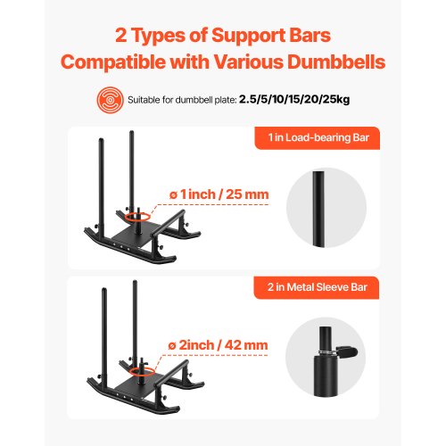 Lämplig för viktskivor på 25 och 51 mm: Denna fitnessskoter har 2,5 cm och 5 cm stödstänger och dubbla metallhylsor för bättre lastkapacitet. Passar standardviktskivor. Den 5 cm stora stången möjliggör enkel installation, med ett lås för att hålla viktskivorna på plats.
