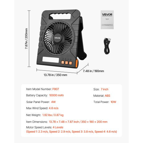 Bärbar ficklampa: Med en räckvidd på 10 meter lyser denna ficklampa upp dina utomhusaktiviteter, oavsett om det gäller camping, fiske eller grillning. Den handhållna designen gör den enkel att bära med sig och ger ljus när det behövs. Denna bärbara solcellsfläkt är oumbärlig för dina utomhusäventyr.