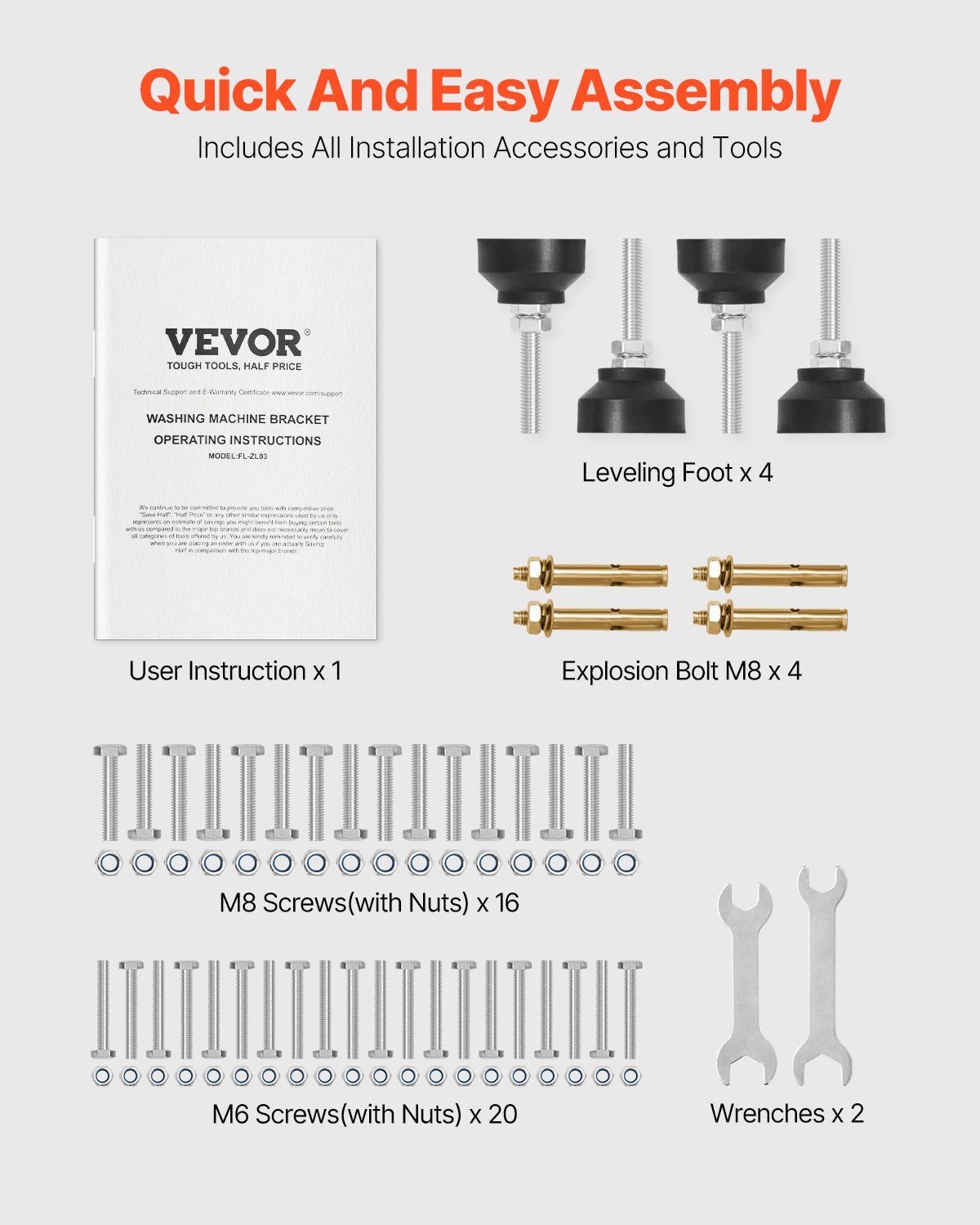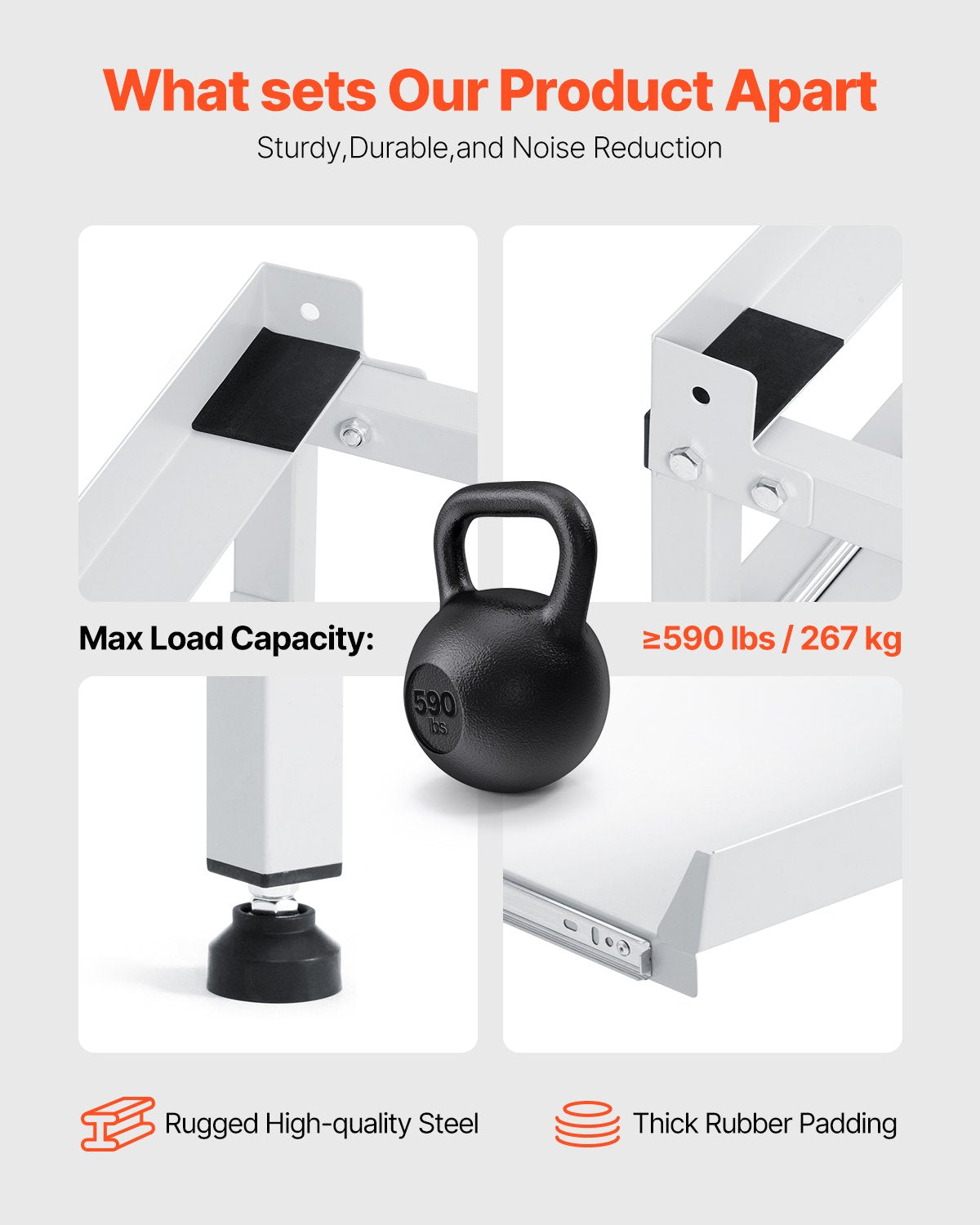 Stark och hållbar ljudreducering: Tillverkad av kolstål, denna tvättmaskin och torktumlare är mycket robust och kan hålla tvättmaskiner som väger upp till 590 lbs / 267 kg, vilket gör den till ett utmärkt val för ditt hem