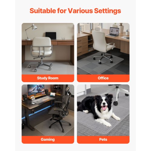 Bred användning: Denna mångsidiga genomskinliga golvmatta är inte bara för kontor! Använd den i ditt vardagsrum, sovrum, arbetsrum, matplats eller husdjurszon för enkelt skydd och fysisk avskiljning i vilket rum som helst i ditt hem.