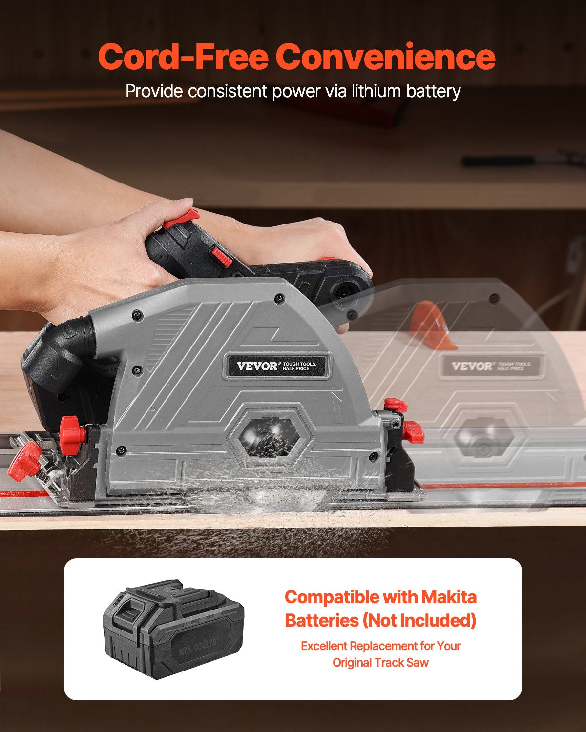 Snabb och exakt skärning: Denna sladdlösa dykbandsåg har ett 5,5 tum, 42-tands hårdmetallspetsblad med ett maximalt vertikalt skärdjup på 2,05 tum (52 mm) och ett 45° fasdjup på 1,5 tum (38 mm). Du kan skräddarsy varje snitt efter dina projektbehov, vilket förbättrar verktygets mångsidighet