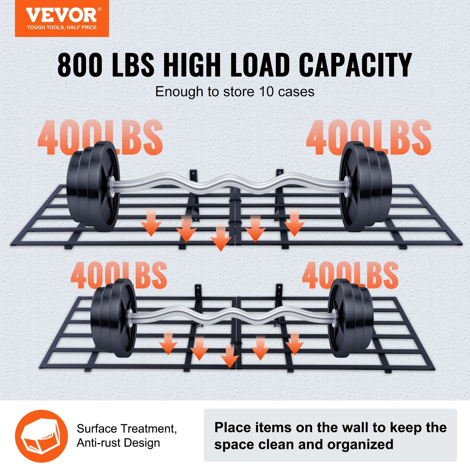 800 lbs hög belastningskapacitet: Våra garagevägghyllor är gjorda av högkvalitativ metall och väger 40,79 lbs. Varje hylla har en maximal lastkapacitet på 800 lbs, vilket gör den bekväm att hänga upp verktyg. Installationshålsavstånd: 18 tum.
