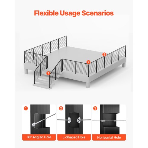 Schutz für mehrere Szenen: Unser Kabelschienenpfosten eignet sich sowohl für den Innen- als auch für den Außenschutz, einschließlich Decks, Treppen, Veranden, Zäunen, Terrassen, Balkonen, Gärten, Wohngebäuden, Geschäftsräumen, Hotels, Garagen und mehr