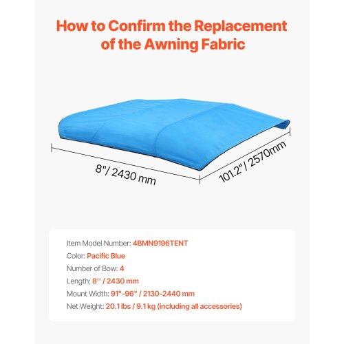 4-Bogen-Ersatzdach: Dieses Bootsvordach misst 96" Länge x (91"-96") Breite. Sie können die richtige Größe basierend auf Ihrem Boot und den Abmessungen des Vordachs wählen. Es kann nahtlos auf verschiedenen Bootsvordachrahmenformen installiert werden und gewährleistet so Vielseitigkeit. Hinweis: Die Stützstangen und der Rahmen aus Aluminiumlegierung sind nicht im Lieferumfang enthalten.