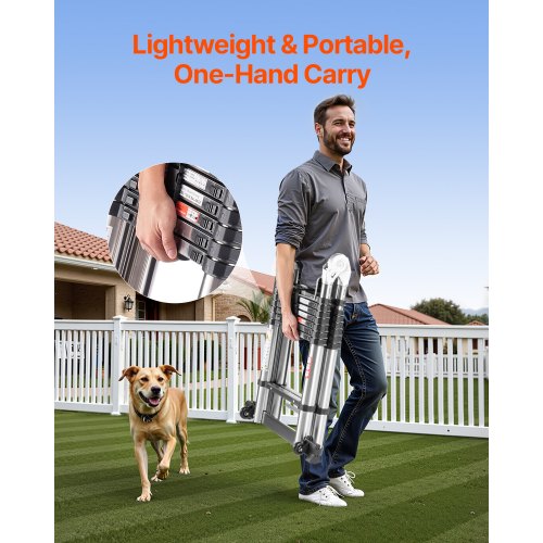 Vielseitiges Design: Diese Teleskop-A-Leiter verfügt über ein einziehbares Design mit verstellbaren Beinen, die Winkel von 30° oder 180° ermöglichen. Sie erreicht eine Gesamthöhe von 5 m und lässt sich zur einfachen Lagerung auf nur 91 cm zusammenklappen.