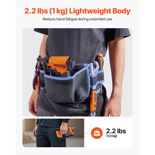 Bekvämt grepp: Utrustad med ett ergonomiskt halkfritt gummigrepp och lättviktig konstruktion, erbjuder denna lätta luftdrivna häftpistol bättre kontroll, mjukt och säkert grepp som minskar handtrötthet vid längre tids användning.