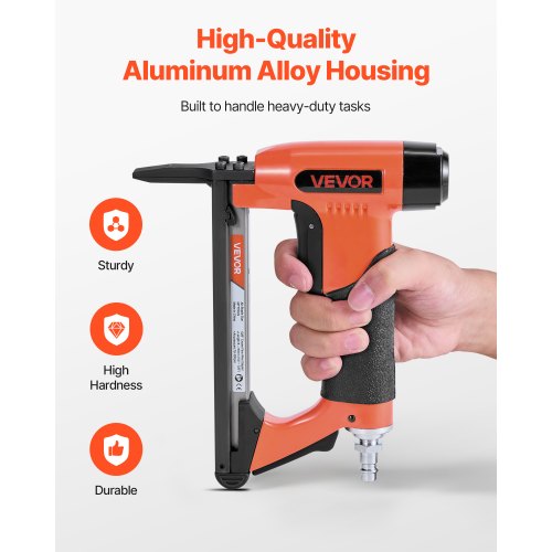 Bekvämt grepp: Utrustad med ett ergonomiskt halkfritt gummigrepp och lättviktig konstruktion, erbjuder denna lätta luftdrivna häftpistol bättre kontroll, mjukt och säkert grepp som minskar handtrötthet vid längre tids användning.