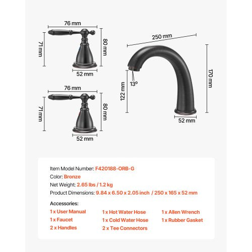 romersk badkarsblandare, badkarsblandare med svanhals och 2 handtag, romerska badkarsblandare för däckmontering för babyvård, vuxenbad, badkarsblandare med 3 hål och vattenfall, brons, design med hög båge | EU