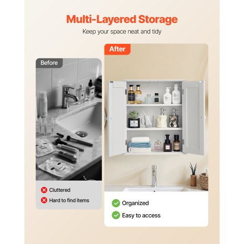 Flerskiktad klassificerad förvaring: Vetenskapliga förvaringsväggar förtydligar klassificeringen av föremål. Detta hängande badrumsskåp har en genomtänkt lagerdesign. Det rymmer flaskor och burkar i alla storlekar, som du kan ta med dig och ställa undan utan att det blir rörigt.