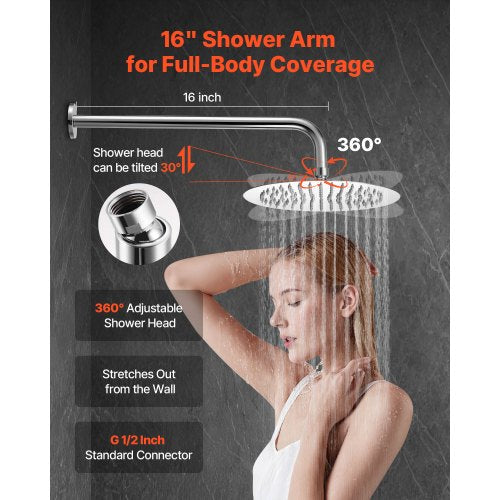Gleichmäßige Wasserabdeckung: Der 40,6 cm verlängerte Duscharm erhöht die Abdeckung und sorgt für eine sanfte und weiche Dusche. Der um 360° drehbare Duschkopf erfüllt unterschiedliche Winkelanforderungen und der G 1/2"-Anschluss erfordert keine zusätzlichen Teile für eine einfache Installation.