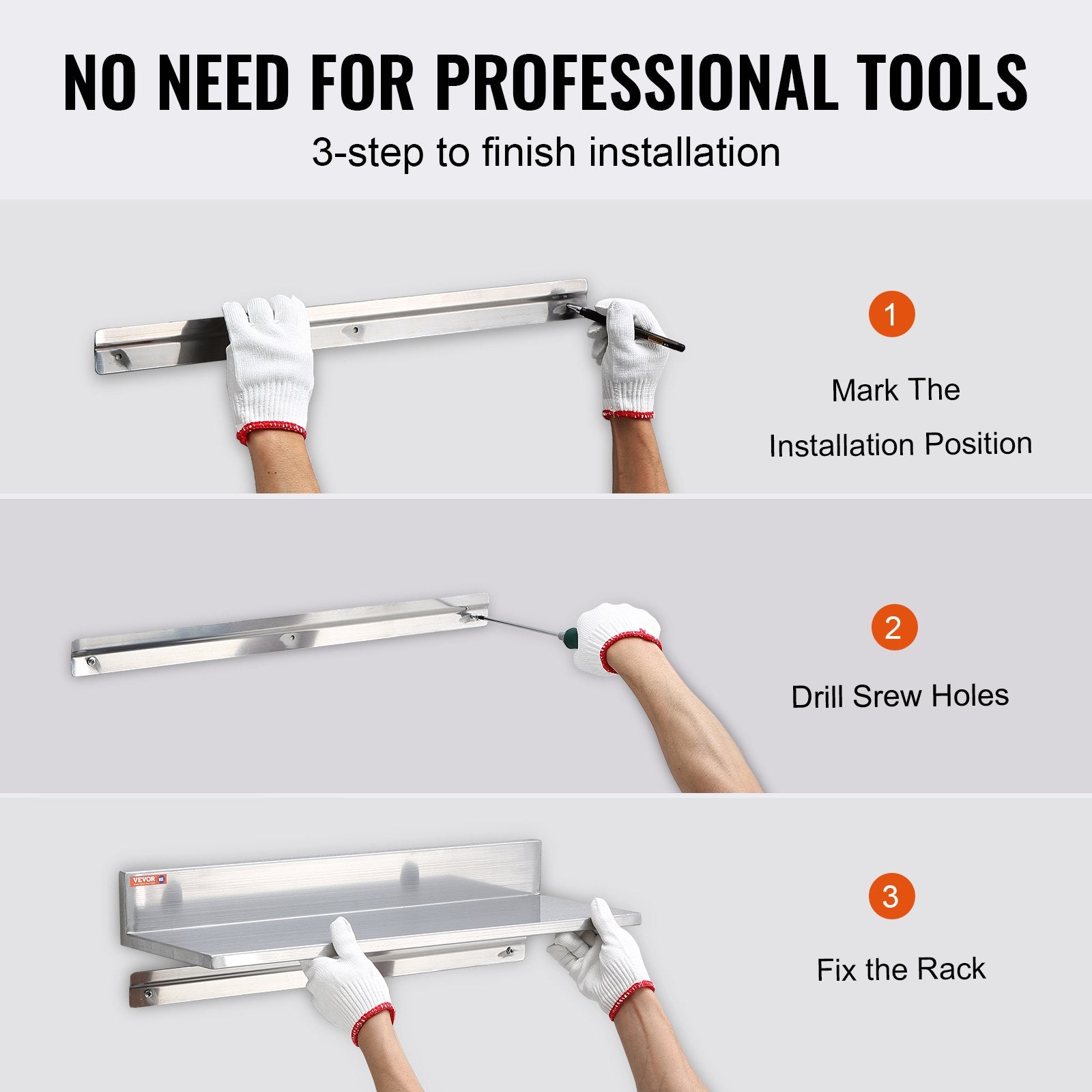 Vielfältige Anwendungsmöglichkeiten: Das offene Design hält Zutaten und Zubehör in Reichweite. Darüber hinaus kann dieses kommerzielle Wandregal in Küche, Schlafzimmer, Garage, Waschküche und mehr aufgestellt werden. Komfort ist immer griffbereit.