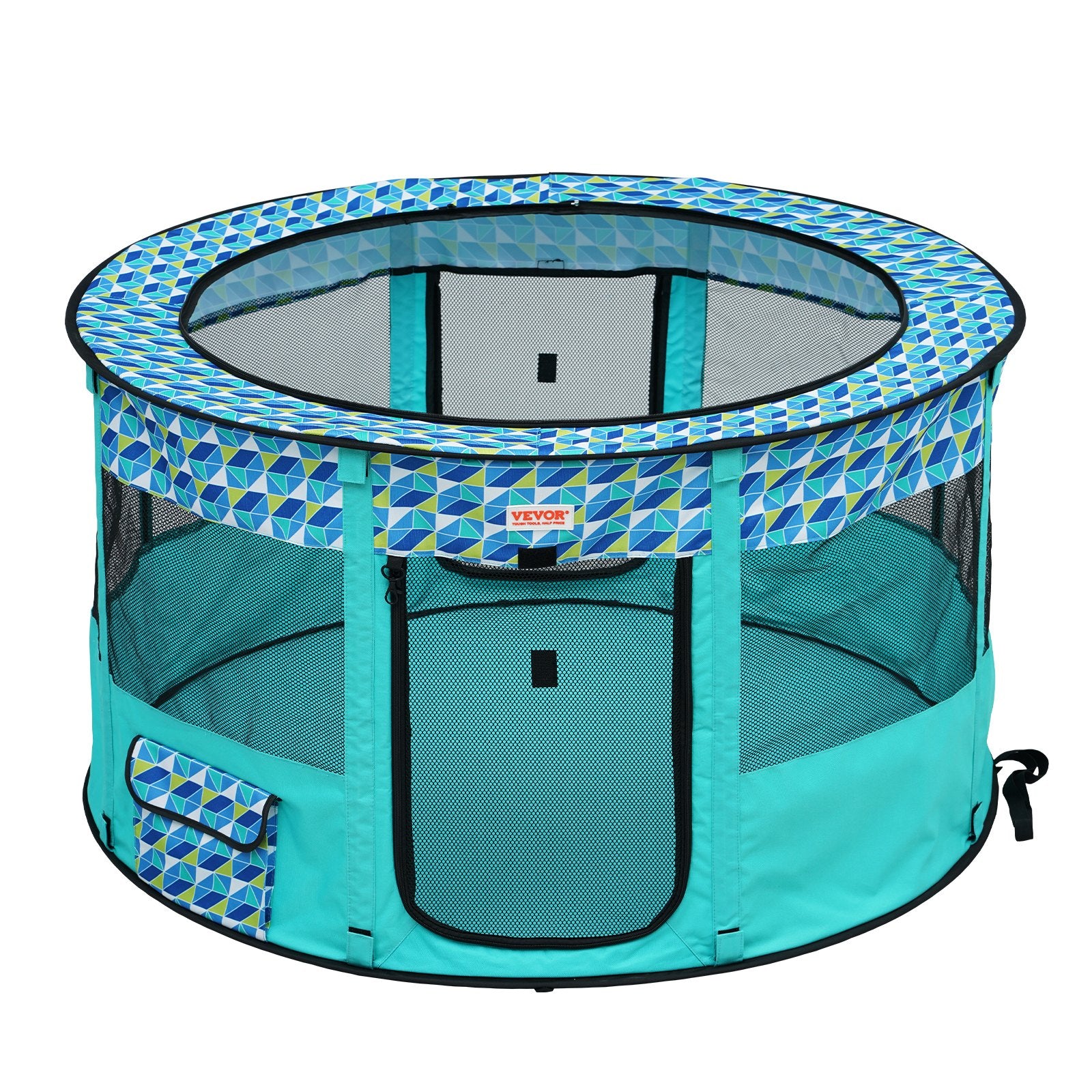 Faltbarer Laufstall für Haustiere, 112 x 112 x 61 cm, tragbarer Hundelaufstall, Box-Zwinger für Welpen, Hunde, Katzen, wasserdichtes 600D-Oxford-Gewebe, abnehmbarer Reißverschluss, für Indoor-Camping im Freien (rund, L)