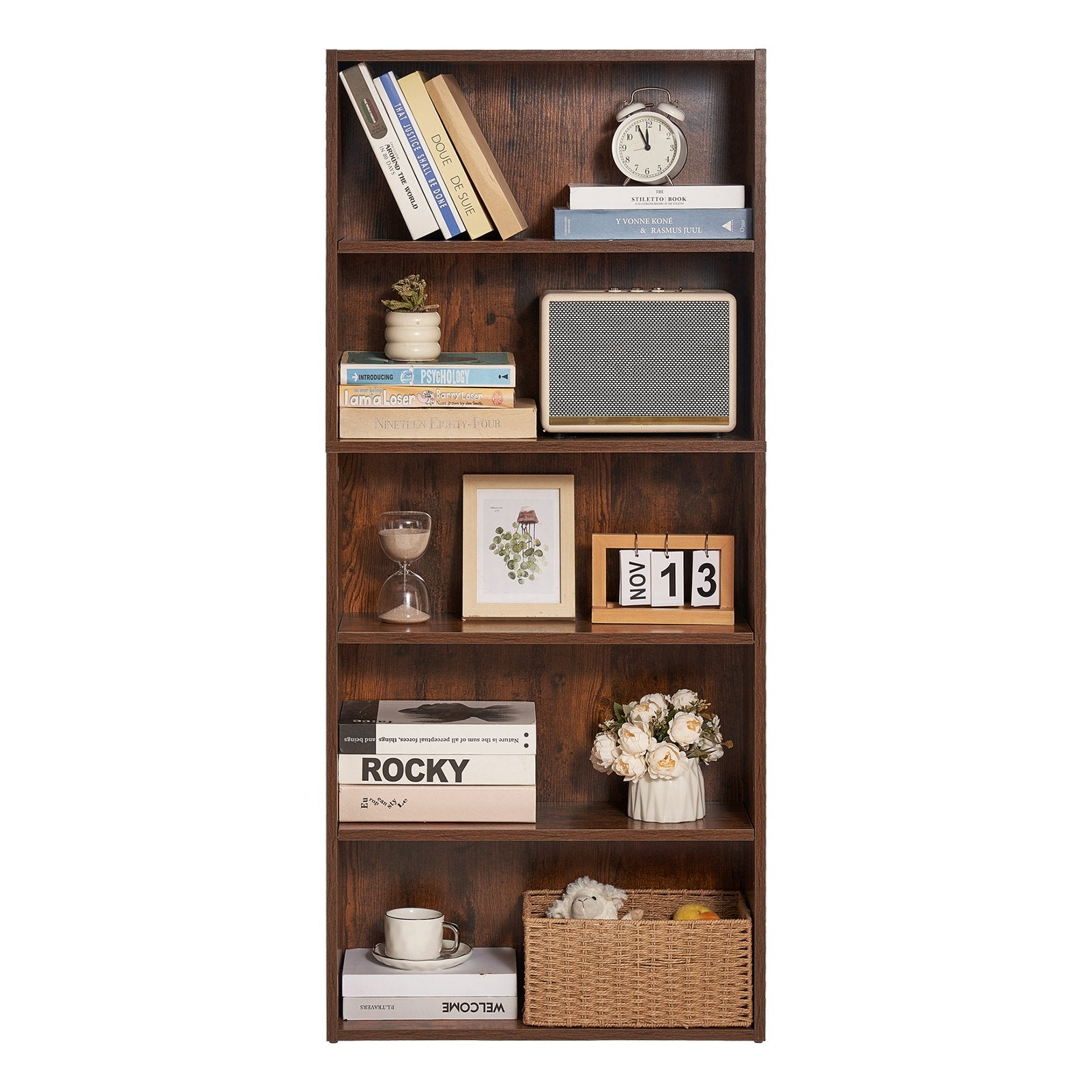 Bücherregal mit 5 Ebenen, schmal, 135,6 cm, offenes Bücherregal aus Holz, verstellbare Regalböden, Braun