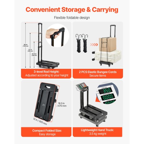 Erweiterbare Basis: Dieser Handwagen verfügt über eine ausziehbare Ladefläche, ideal für größere Gegenstände. Sie erhalten zusätzlichen Platz für Ihre Waren, sodass Sie sich keine Sorgen um übergroße Kisten machen müssen. Tragen Sie mehr mit Leichtigkeit