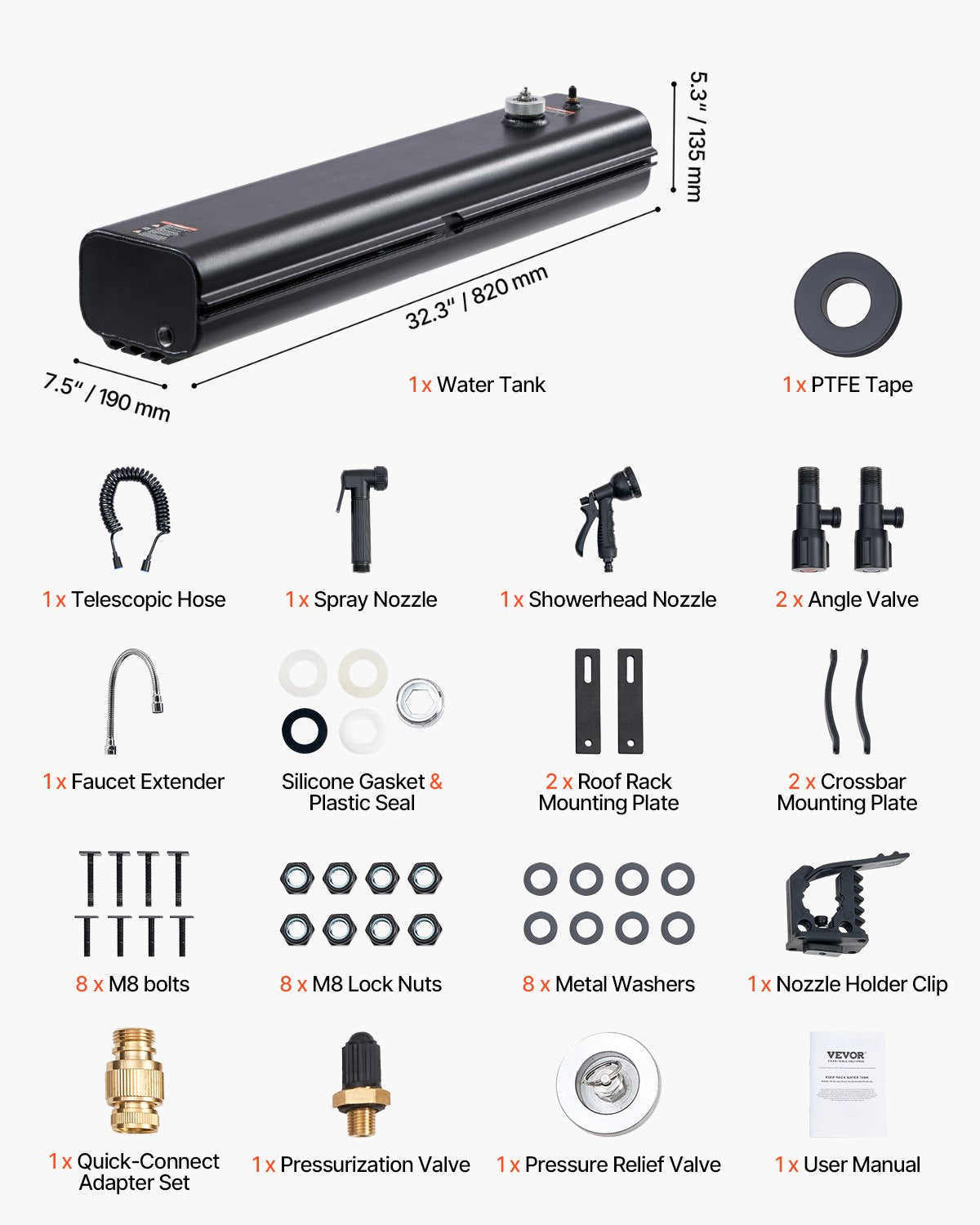 Vielseitige Düsenoptionen: Ausgestattet mit Duschdüsen und Sprühdüsen kann dieser Dachgepäckträger-Wassertank an einen 4 m langen Teleskopschlauch angeschlossen werden, um eine weite Reinigung über große Entfernungen zu ermöglichen. Er enthält eine Wasserhahnverlängerung mit verstellbaren Winkeln für eine erfrischende Dusche im Freien nach dem Sport.