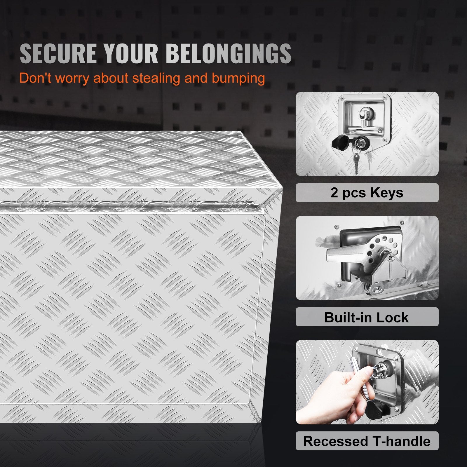 Unterwagen-LKW-Box, 60" x 17" x 18" Pickup-Aufbewahrungsbox, robuster Werkzeugkasten aus Aluminium mit Diamantplatte und Schloss und Schlüssel, wasserdichte Anhänger-Aufbewahrungsbox mit T-Griff-Verriegelung für LKW, Transporter, Anhänger