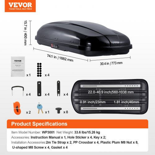 Dachgepäckträger 14 Kubikfuß Gepäckaufbewahrungsbox ABS für SUVs Autos | EU