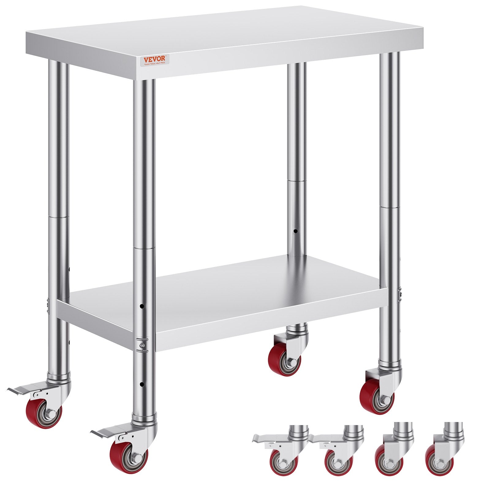 Catering-Arbeitstisch aus Edelstahl, 76,2 x 45,7 cm, gewerblicher Küchentisch mit 4 Rädern, gewerbliche Werkbank zur Lebensmittelzubereitung mit flexibel verstellbarer Ablage für den Küchenvorbereitungstisch