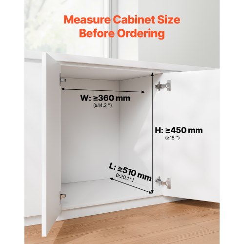 Einfache Installation in wenigen Minuten: Mit den mitgelieferten Befestigungslöchern und Schrauben lässt sich der Mülleimer schnell und einfach in Ihrem Schrank installieren. Empfohlene Schrankgröße: Tiefe (vorne und hinten): ≥510 mm / ≥20,1 Zoll; Breite (rechts und links): ≥360 mm / ≥14,2 Zoll; Vertikale Höhe (oben und unten): ≥450 mm / ≥18 Zoll