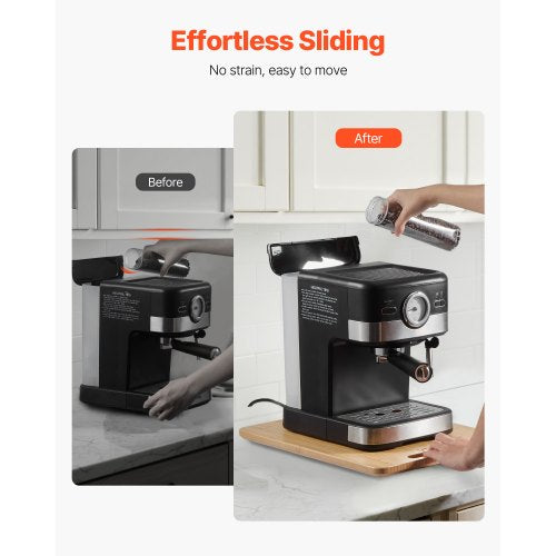 Leichtes Gleiten: Der hohle Griff ermöglicht das Bewegen von Geräten mit einer Hand. Das spart Zeit und reduziert den Aufwand beim Heben. Unsere rollbare Geräteablage maximiert den Platz in der Küche und verhindert gleichzeitig, dass Dampf die Schränke beschädigt.