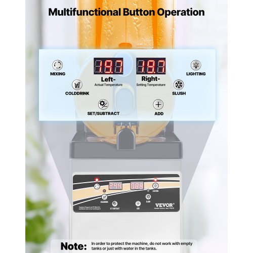 Für verschiedene Getränke: Diese verbesserte kommerzielle Slush-Maschine verfügt über einen einstellbaren Temperaturbereich von 5 bis 50 °F/-15 bis 10 °C, sodass Sie die Weichheit oder Härte Ihrer Getränke steuern können. Für kalte Getränke: 3 bis 5 °C/37,4 bis 41 °F; für alkoholfreien Slush: -3 bis -1 °C/26,6 bis 30,2 °F; für alkoholische Getränke: -15 bis -6 °C/5 bis 21,2 °F. (Empfohlener Zuckergehalt: ca. 13 %, Alkoholgehalt: unter 13 %). Sie eignet sich ideal für die Zubereitung einer Vielzahl von Getränken wie Saft, Tee, Margarita und Eiskaffee.