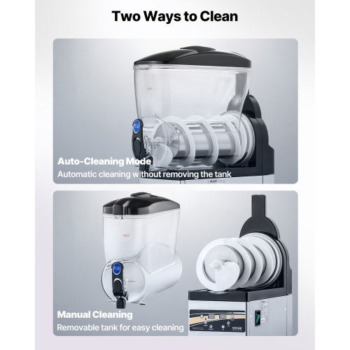 Langlebig und leicht zu reinigen: Dieser kommerzielle Slush-Maker mit Edelstahlgehäuse und lebensmittelechtem PC-Tank ist langlebig und leicht zu reinigen. Der Tank verfügt über eine automatische One-Touch-Reinigung, und die modularen Komponenten lassen sich für eine problemlose Wartung und Reinigung ohne Werkzeug leicht zerlegen.