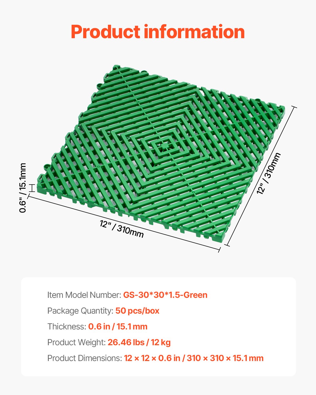 Extra dickes Design: Unsere ineinandergreifende Drainagematte hat eine verbesserte Dicke von 15 mm, was die Drainageeffizienz erhöht. Sie reinigt schnell Wasser in der Garage und trägt gleichzeitig effektiv das Gewicht des Fahrzeugs. Ihre solide Struktur bietet hervorragende Tragfähigkeit und ist ideal für stark frequentierte Garagenbereiche.