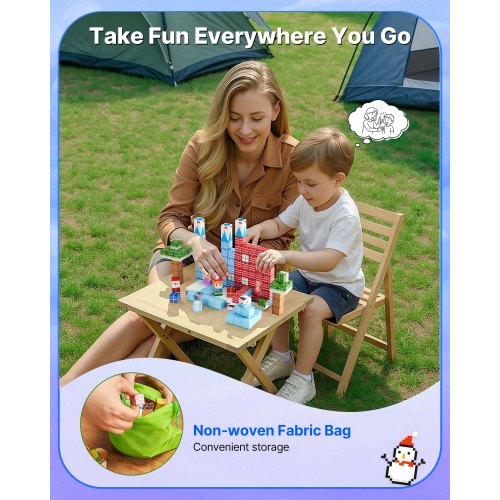 Einfache Aufbewahrung: Die mitgelieferte Stofftasche ermöglicht schnelles und einfaches Aufräumen. Unsere magnetischen Bausteine sind leicht und tragbar, sodass Ihr Kind sie überallhin mitnehmen kann, um auch unterwegs kreativen Spaß zu haben.