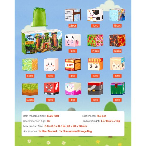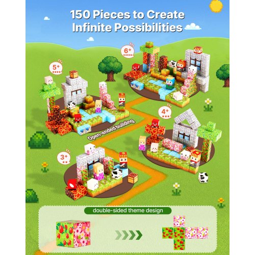 Freiformbau und doppelseitige Motive: Mit 150 Magnetblöcken und doppelseitigen Motiven kann Ihr Kind flache Designs, 3D-Strukturen und sogar ikonische Nachbildungen erstellen! Kombinieren Sie die Blöcke mit anderen Magnetblock-Sets, um neue Geschichten zu erschaffen.