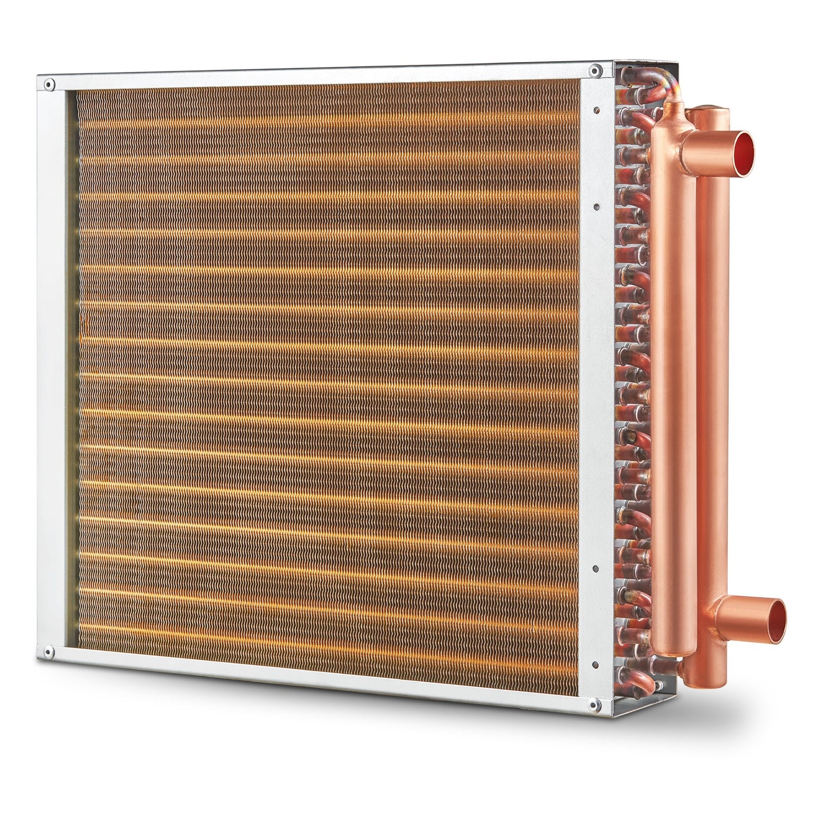 Effiziente Wärmeübertragung: Der Wärmetauscher erzeugt bis zu 160 kBtu pro Stunde mit 12 Aluminiumlamellen pro Zoll und 3 Reihen nahtloser 3/8-Zoll-Kupferrohre. Die mit Gewinden versehenen Kupferrohre vergrößern die Kontaktfläche und Kapazität des flüssigen Mediums und verbessern so die Leistung des Wärmetauschers erheblich.