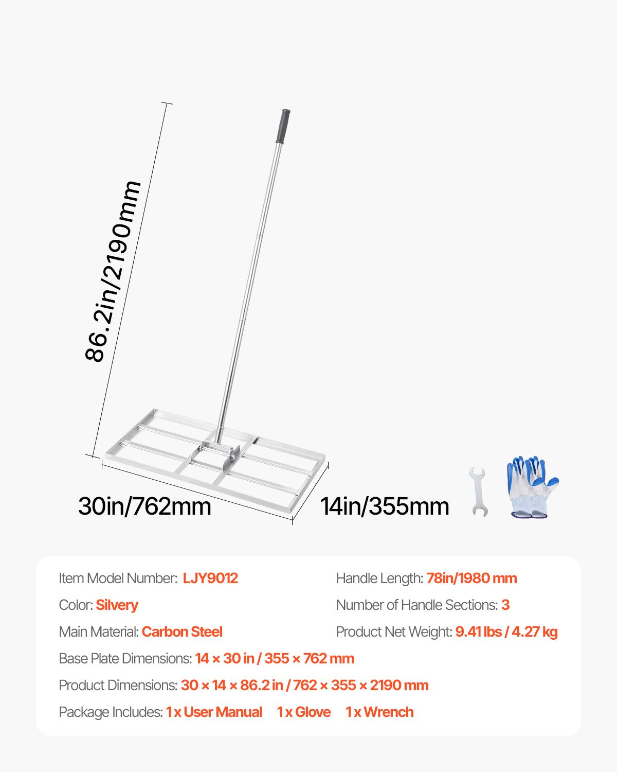 Große Nivellierrutsche: Unser Nivellierwerkzeug verfügt über eine 30x14-Grundplatte aus Kohlenstoffstahl. Das Gesamtgewicht von 9,7 Pfund verbessert das Nivellierungserlebnis und vermeidet die Schwierigkeit, zu leicht zum Schieben zu sein. Das spart Zeit und Energie durch schnelles und effizientes Einebnen Ihres Grundstücks.