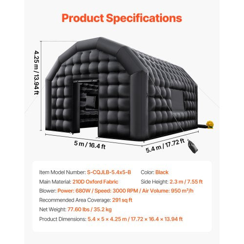 Uppblåsbar Nattklubb, 5,4 x 5 x 4,2 m Uppblåsbart Partytält med 680W Blåsmaskin och Sandsäck, Ventilerad Uppblåsbar Nattklubb med 2 Fönster, Luftkubhus för Evenemang, Födelsedag, Bröllopsfest | EU