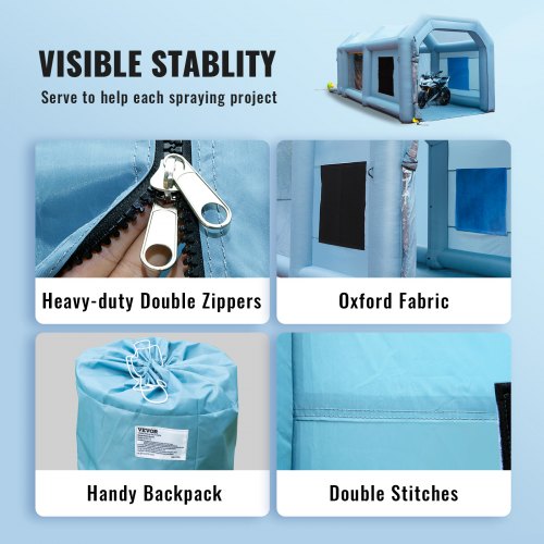 Großzügiger Innenraum: Der geräumige Innenraum dieser mobilen Lackierkabine bietet 30 % mehr Platz als herkömmliche Modelle und ermöglicht Ihnen so das Lackieren oder Reparieren Ihrer Autoteile. Ob Sie zusätzlichen Bewegungsraum oder Platz zum Lagern von Ausrüstung benötigen, unsere aufblasbare Lackierkabine bietet die nötige Flexibilität für Ihre Arbeit.