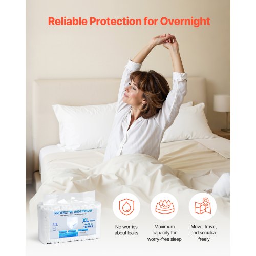 Hohe Saugfähigkeit: Die VEVOR Inkontinenzunterwäsche für Erwachsene in Größe XL ist ideal für Männer und Frauen mit Blasenschwäche oder Inkontinenzproblemen. Die hochsaugfähigen Doppelkerne können bis zu 1200 ml Flüssigkeit aufnehmen und sorgen für ein trockenes und angenehmes Tragegefühl. Empfohlen für Taillenumfang 112–142 cm, Gewicht 84–119 kg.