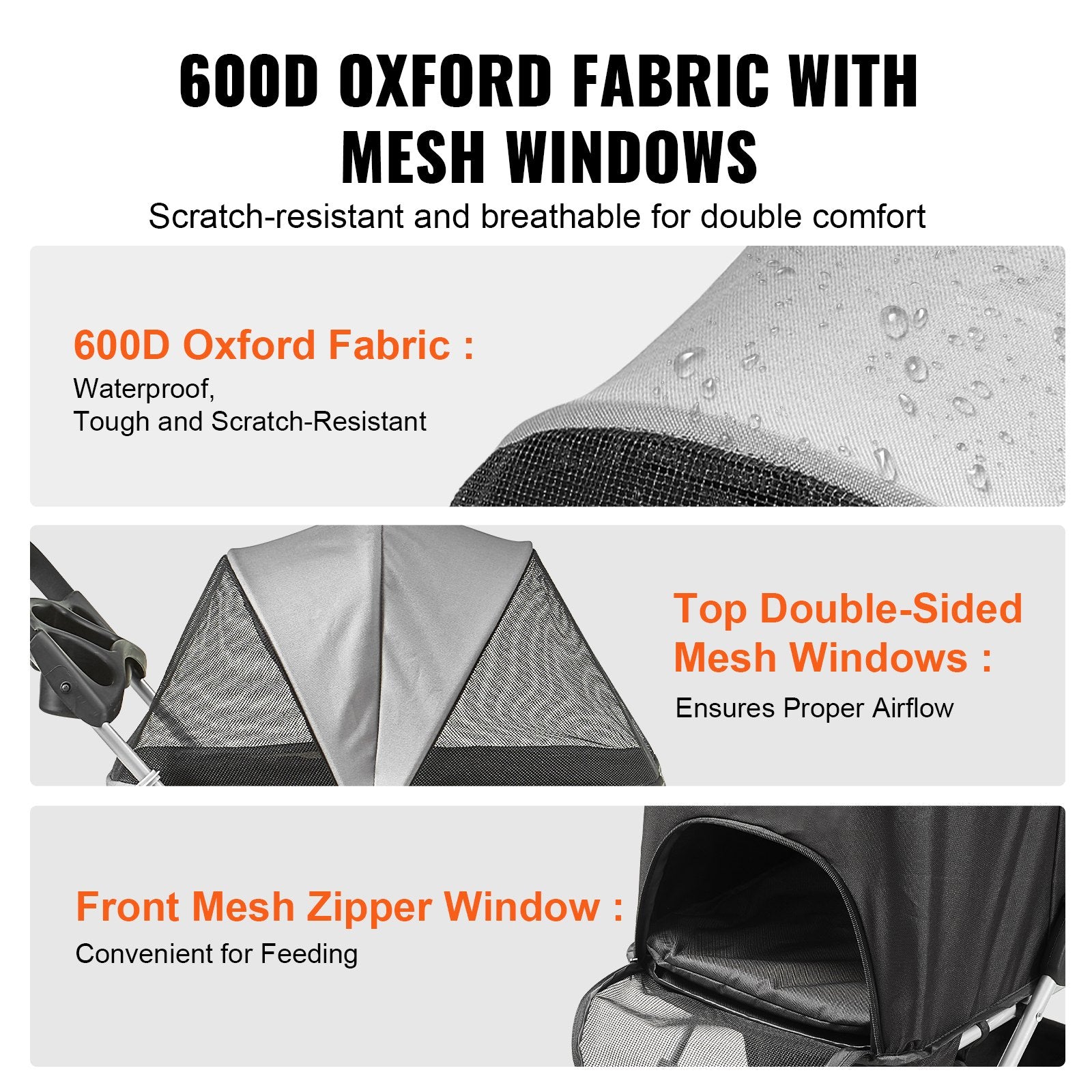Tragkraft: Dieser Haustier-Buggy verfügt über einen robusten Aluminiumrahmen und eine rostbeständige Pulverbeschichtung für Langlebigkeit. Ob gemütlicher Spaziergang im Park oder lange Reise – er bietet Ihrem Haustier Komfort und Sicherheit.