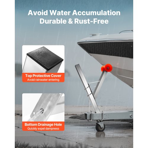 Doppeltes Drainage-Design: Die obere Abdeckung hält Wasser fern, während das untere Abflussloch Wasseransammlungen verhindert und dafür sorgt, dass der Innenraum trocken bleibt. Dieses Design des Bootsanhänger-Windenständers reduziert die Alterung und verlängert die Lebensdauer der Windenhalterung.