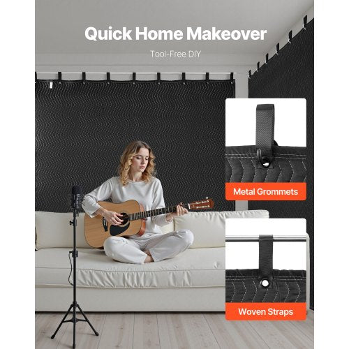 2-pack ljuddämpande filtar, 2438 x 2032 mm, extra stor ljudisolerad filt med öljetter, studiofilt med öljetter och bomullsfyllning, för fönster, dörrar, ljusblockerare, musikinspelning | EU