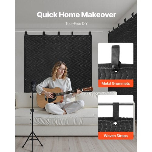 ljuddämpande filtar, ljudisolerade gardiner med 2032 x 1219 mm, ljudisolerad filt med öljetter, studiofilt med öljetter, för fönster, dörr, ljusblockerare, musikinspelning, svart | EU