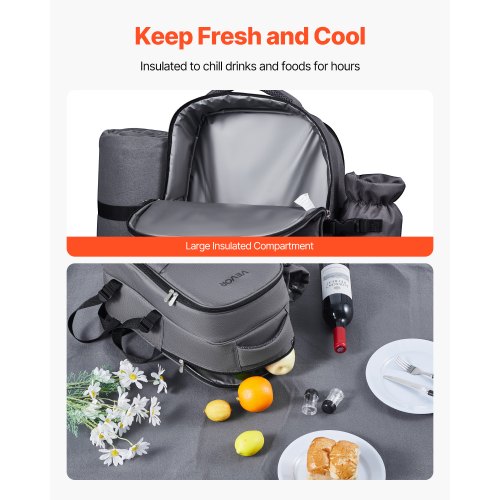Bleiben Sie frisch und kühl: Das große isolierte Fach in diesem Picknick-Rucksack sorgt dafür, dass Ihre Getränke und Speisen stundenlang frisch und kühl bleiben. Egal, ob Sie Sandwiches, Salate oder gekühlte Getränke einpacken, die Isolierung hilft, die ideale Temperatur zu halten.