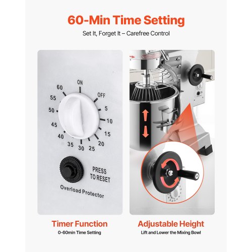 Premium-Qualität und großes Fassungsvermögen: Dieser Industriemixer erfüllt Hygienestandards. Alle Teile, die mit Lebensmitteln in Berührung kommen, bestehen aus lebensmittelechtem Edelstahl 304. Die Schüssel mit einem Fassungsvermögen von 30 Litern bietet ausreichend Platz für 3,5 kg Teig und erfüllt so Ihre vielfältigen kommerziellen Anforderungen.