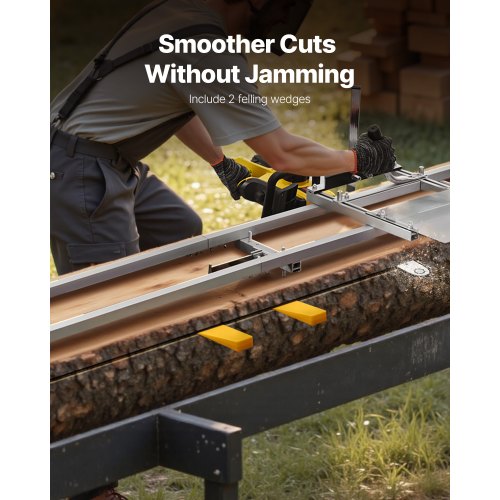 Innehåller 2 stockkilar: Motorsågverkets skenstyrning levereras med två antibindningskilar för att förhindra att sågbladet fastnar, vilket säkerställer en smidig och oavbruten sågprocess.