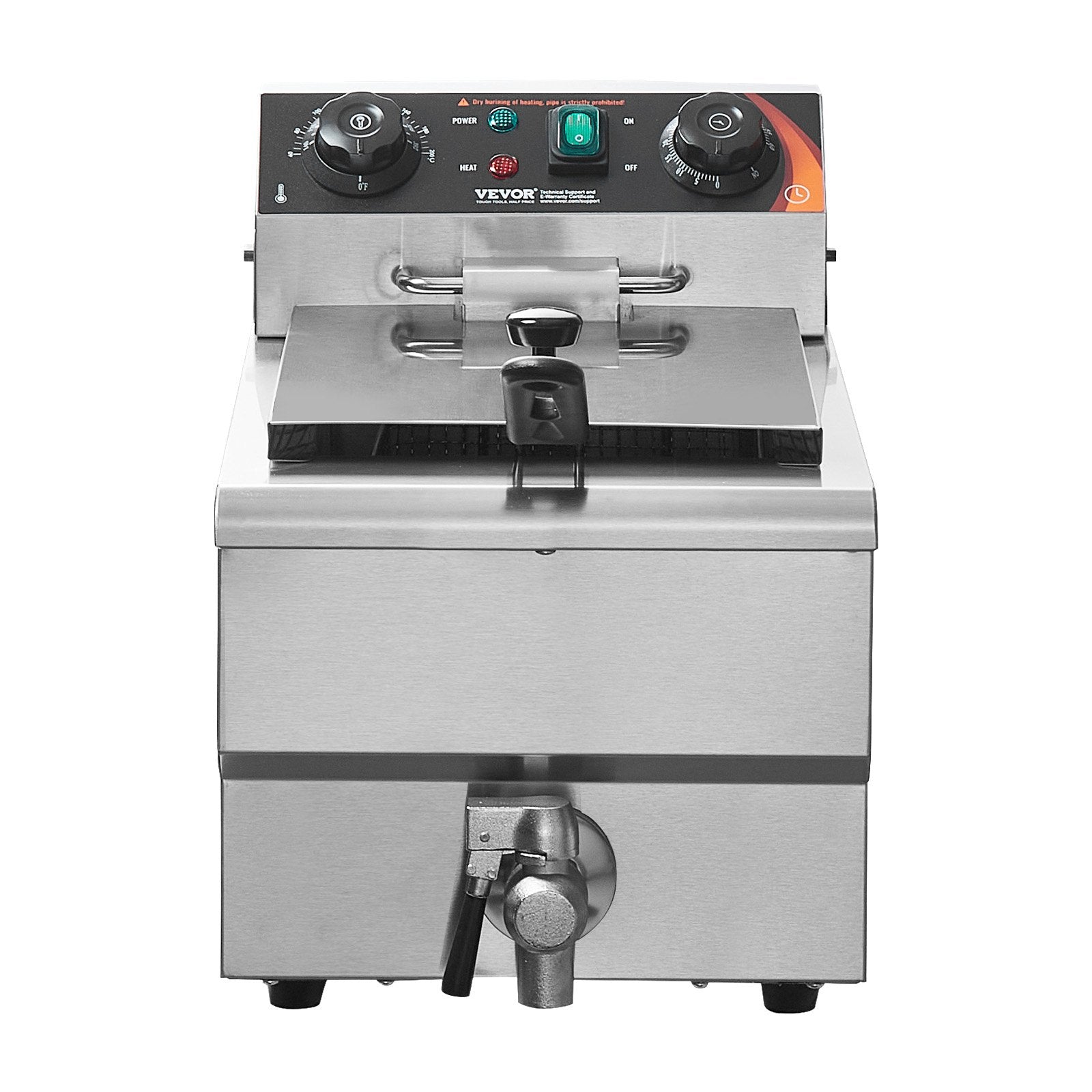 Großes Fassungsvermögen: Mit einem 9,5-Liter-Öltank (Wasserkapazität: max. 11,6 Liter / 11 Liter) ermöglicht diese gewerbliche elektrische Fritteuse das Frittieren einer Vielzahl von Lebensmitteln, wobei deren einzigartiger Geschmack erhalten bleibt. Sie ist ideal für Feinkostläden, Lebensmittelgeschäfte, Snackbars und Partys.