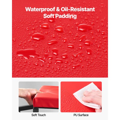 Wasserdichtes Kissen: Unser Rollhocker verfügt über ein großes, weiches Kissen aus Perlbaumwolle, das stundenlanges Sitzen beim Arbeiten ermöglicht. Die Oberfläche besteht aus wasserdichtem und ölbeständigem PU-Kunstleder, das sich leicht abwischen lässt und sich daher ideal für Reparatur- und Reinigungsarbeiten in Garagen, am Straßenrand sowie im Innen- und Außenbereich eignet.