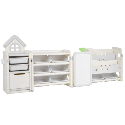 Kinderspielzeug-Aufbewahrungs- und Bücherregal mit 10 herausnehmbaren Kunststoffschubladen und Zeichenbrett