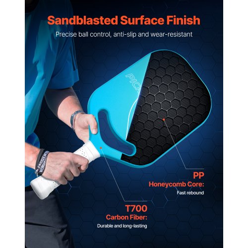 Schweißabsorbierender, rutschfester Griff: Der Griff des Pickleball-Schlägers besteht aus schweißabsorbierendem, gepolstertem Material und sorgt so für einen stabilen Griff und lang anhaltenden Komfort. Der perfekt dimensionierte Griff maximiert den Komfort bei längeren Spielen.