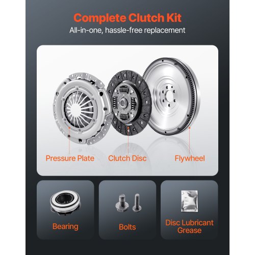 Komplett-Kit: Dieses Kit enthält Schwungrad, Kupplungsscheibe, Druckplatte, Lager, Schrauben und Scheibenschmiermittel – alles, was Sie für einen kompletten Austausch benötigen. Sparen Sie sich die Suche nach zusätzlichen Teilen und lassen Sie Ihr Kupplungssystem in einem Rutsch reparieren.