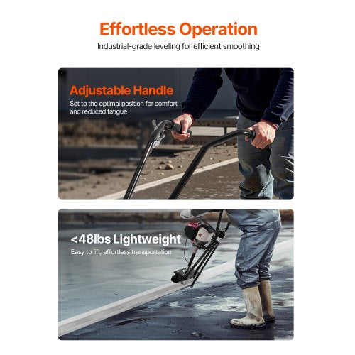 Einfach zu verwenden: Mit einem verstellbaren Griff und einem leichten Design sorgt dieser leistungsstarke Betonglätter für eine glatte, raffinierte Betonoberfläche und verbessert gleichzeitig Komfort und Produktivität.